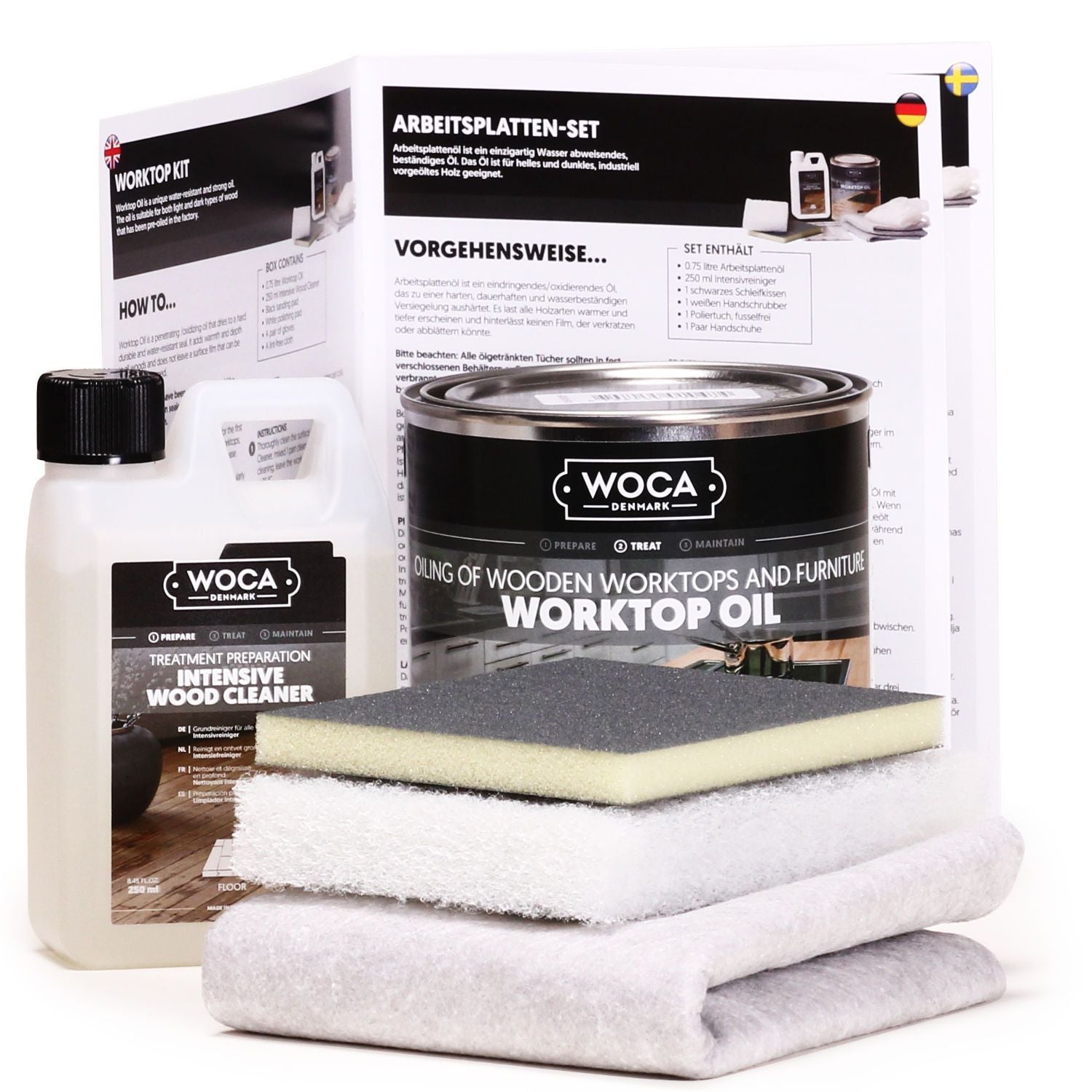 Das WOCA Arbeitsplatten Set Natur ist ideal für die Erstbehandlung und Renovierung von natur geölten Arbeitsplatten. Mit diesem Set wird die Pflege Ihrer Arbeitsplatte einfach und effizient.
