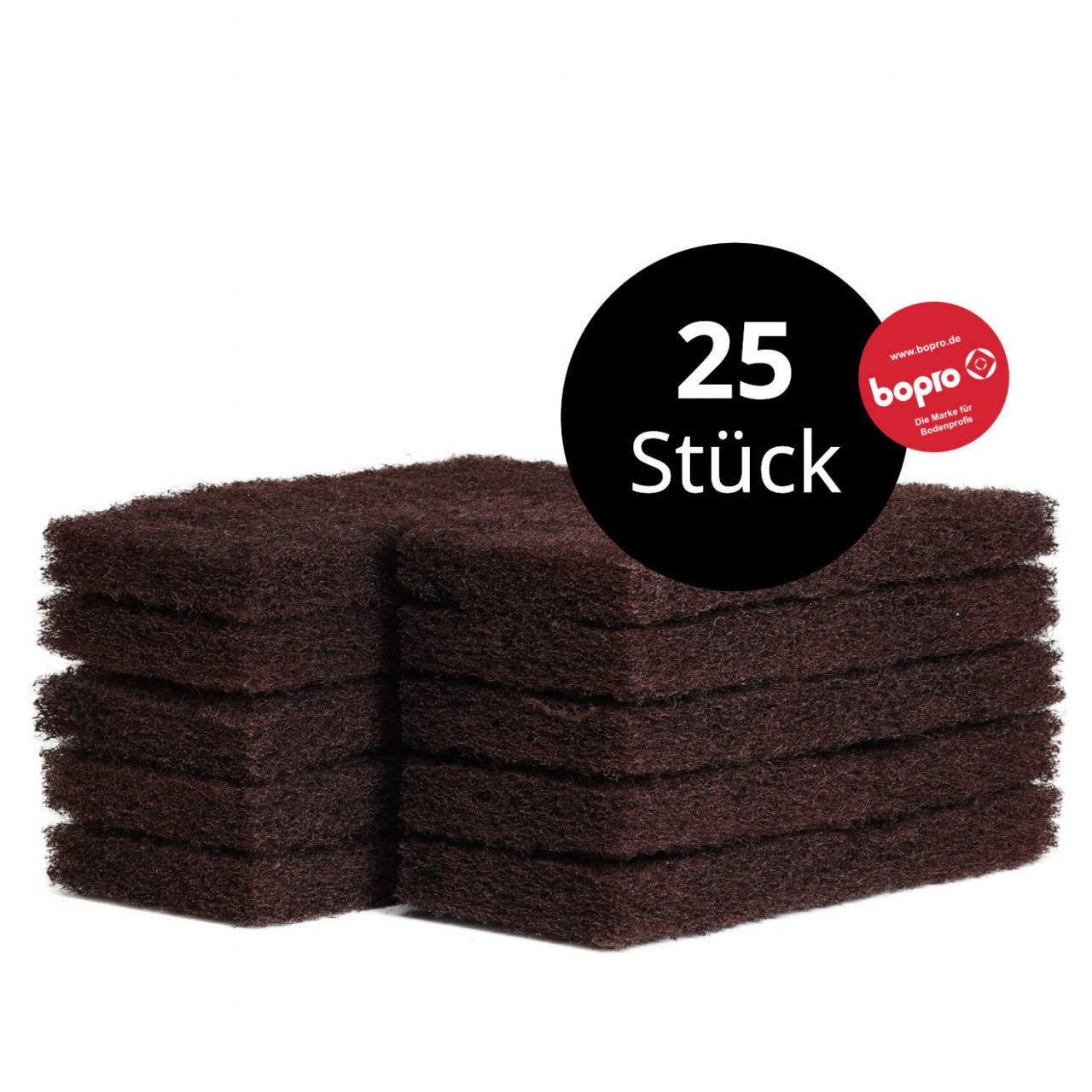 Die braunen Pads bieten eine intensive Reinigungsleistung und können auf unebenen Flächen sowie an schwer erreichbaren Stellen, wie Ecken und Kanten, verwendet werden. Durch ihre Dicke und Robustheit erleichtern sie das Arbeiten auf verschiedenen Oberflächen.