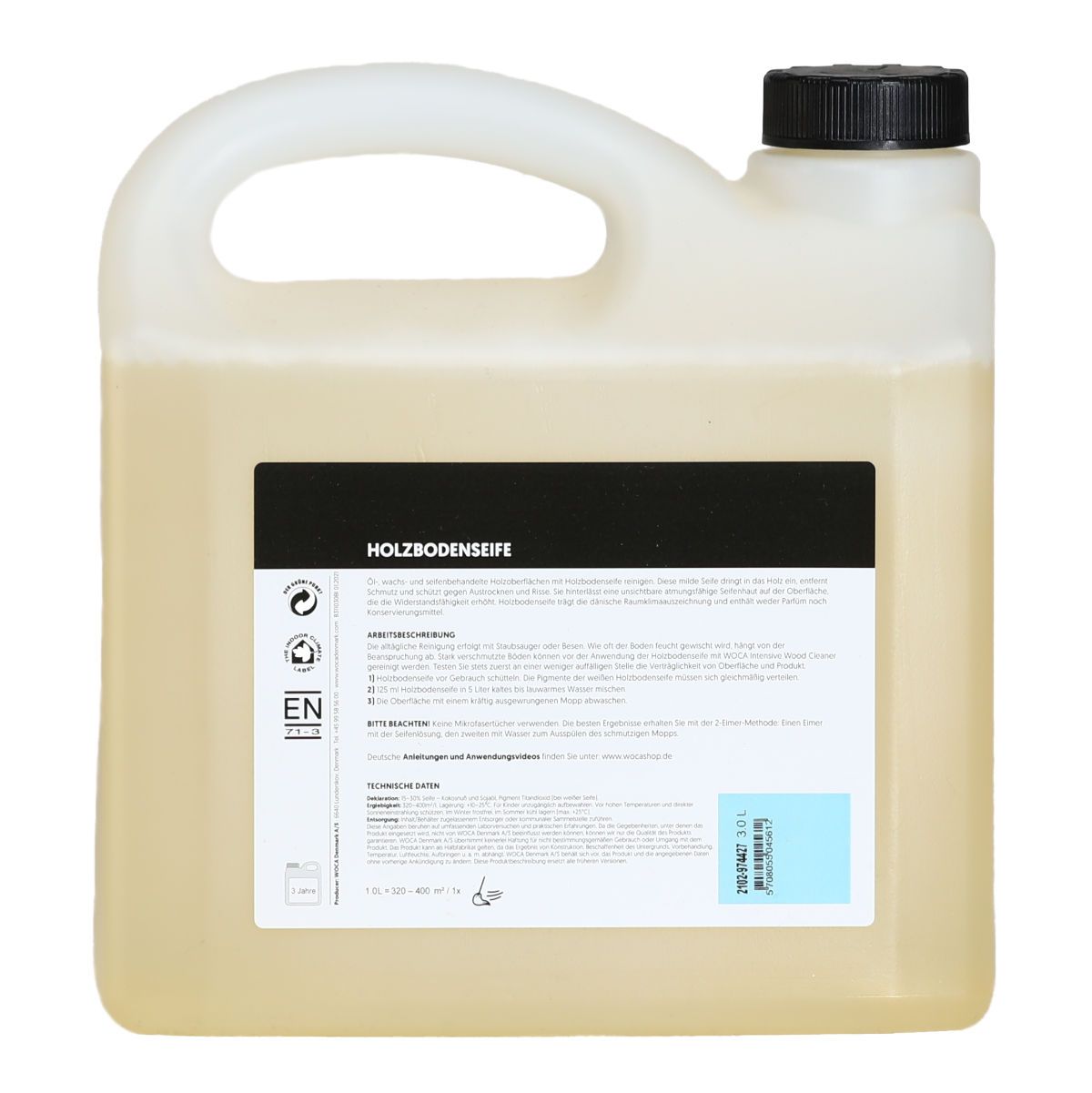 Vor der Anwendung von der Holzbodenseife ist es wichtig, die Flasche gründlich zu schütteln, um sicherzustellen, dass sich die Pigmente gleichmäßig verteilen. Mischen Sie 125 ml Holzbodenseife mit 5 Litern kaltem Wasser. Verwenden Sie einen gut ausgewrungenen Mopp, um die Oberfläche zu reinigen. Um optimale Ergebnisse zu erzielen, empfehlen wir die Verwendung von zwei Eimern: Einen mit der Seifenlösung und den zweiten mit klarem Wasser, um den verschmutzten Mopp auszuspülen. Reinigen Sie den Boden mit so wenig Wasser wie möglich und lassen Sie die Seifenlösung kurz auf der Oberfläche, um Schmutz zu lösen. Nehmen Sie dann die schmutzige Seifenlösung mit einem gründlich ausgewrungenen Mopp oder Tuch auf und spülen Sie es im Eimer mit klarem Wasser aus. Wischen Sie abschließend die Oberfläche erneut mit einem Mopp oder Tuch, das in der Seifenlösung getränkt und gut ausgewrungen wurde, ab, um den schützenden Seifenfilm wiederherzustellen.