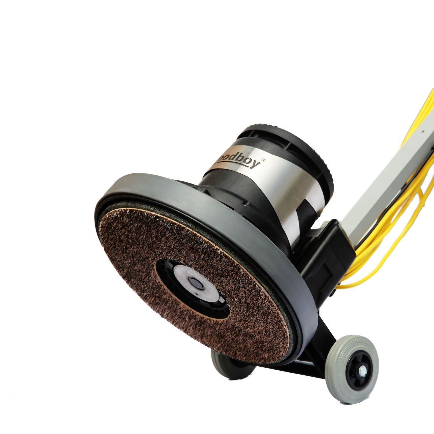 Je nach verwendetem Pad kann das Drehmoment der Maschine erheblich sein. Der Woodboy wiegt 32 kg, daher empfehlen sich bei längeren Einsätzen regelmäßige Pausen, um Unfälle und Schäden am Boden zu vermeiden.